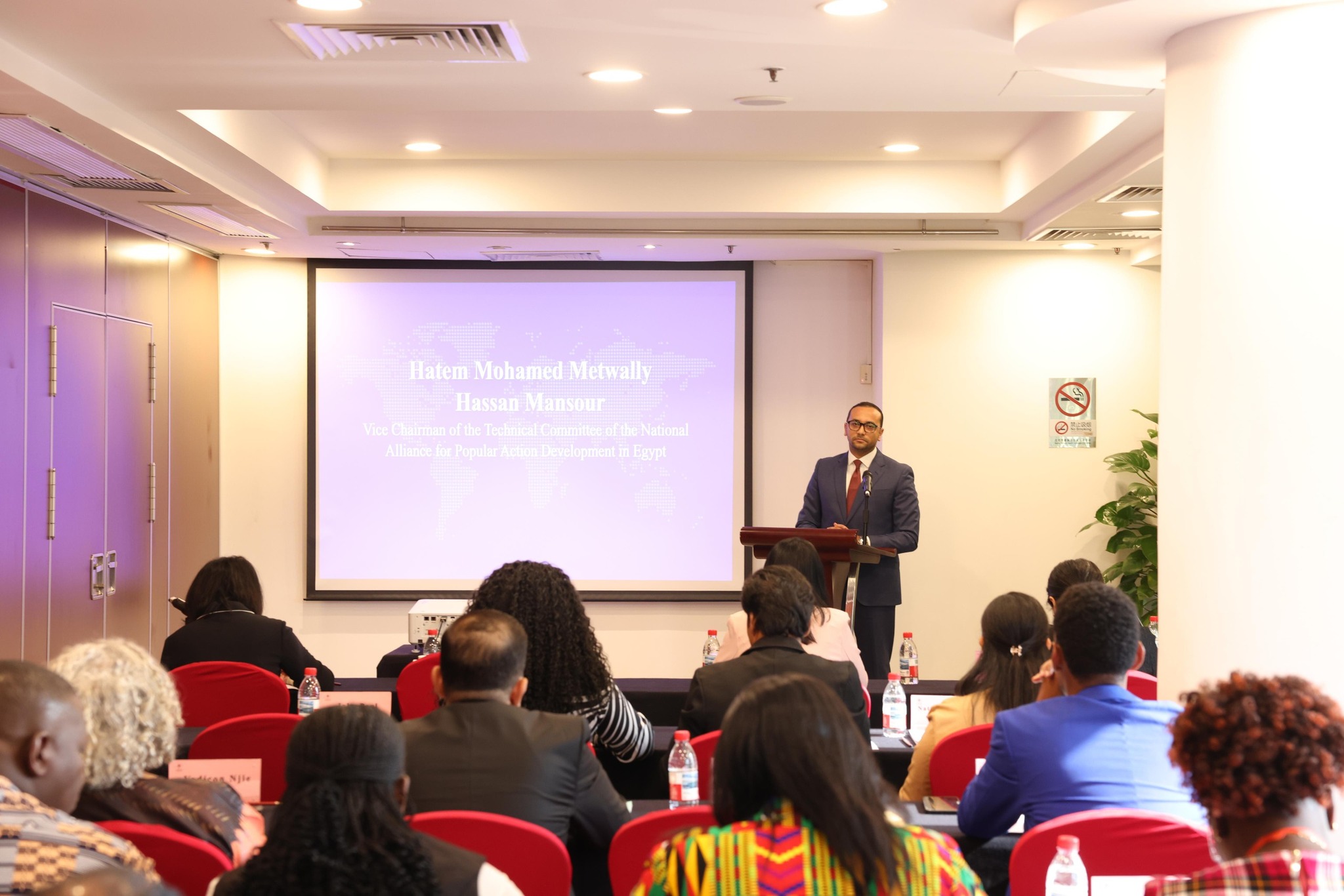 كما أشار أ/حاتم متولي إلى أن مصر وضعت قضايا الحد من الفقر والتنمية المستدامة في صميم أولوياتها الوطنية، من خلال برامج طموحة وجهود متكاملة بين مؤسسات الدولة والمجتمع المدني.