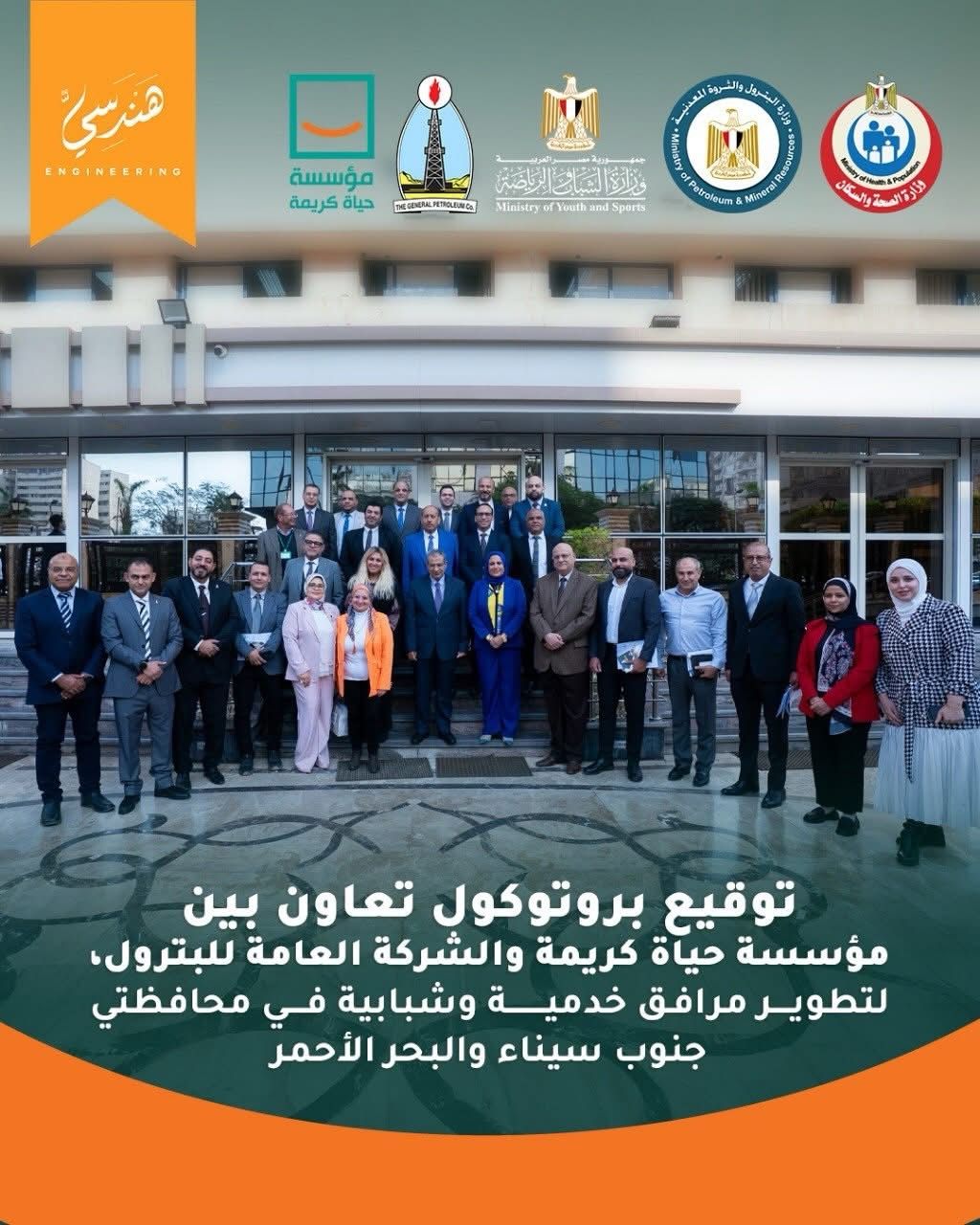 توقيع بروتوكول تعاون بين “حياة كريمة” والشركة العامة للبترول لتطوير منشآت حيوية في رأس سدر ورأس غارب