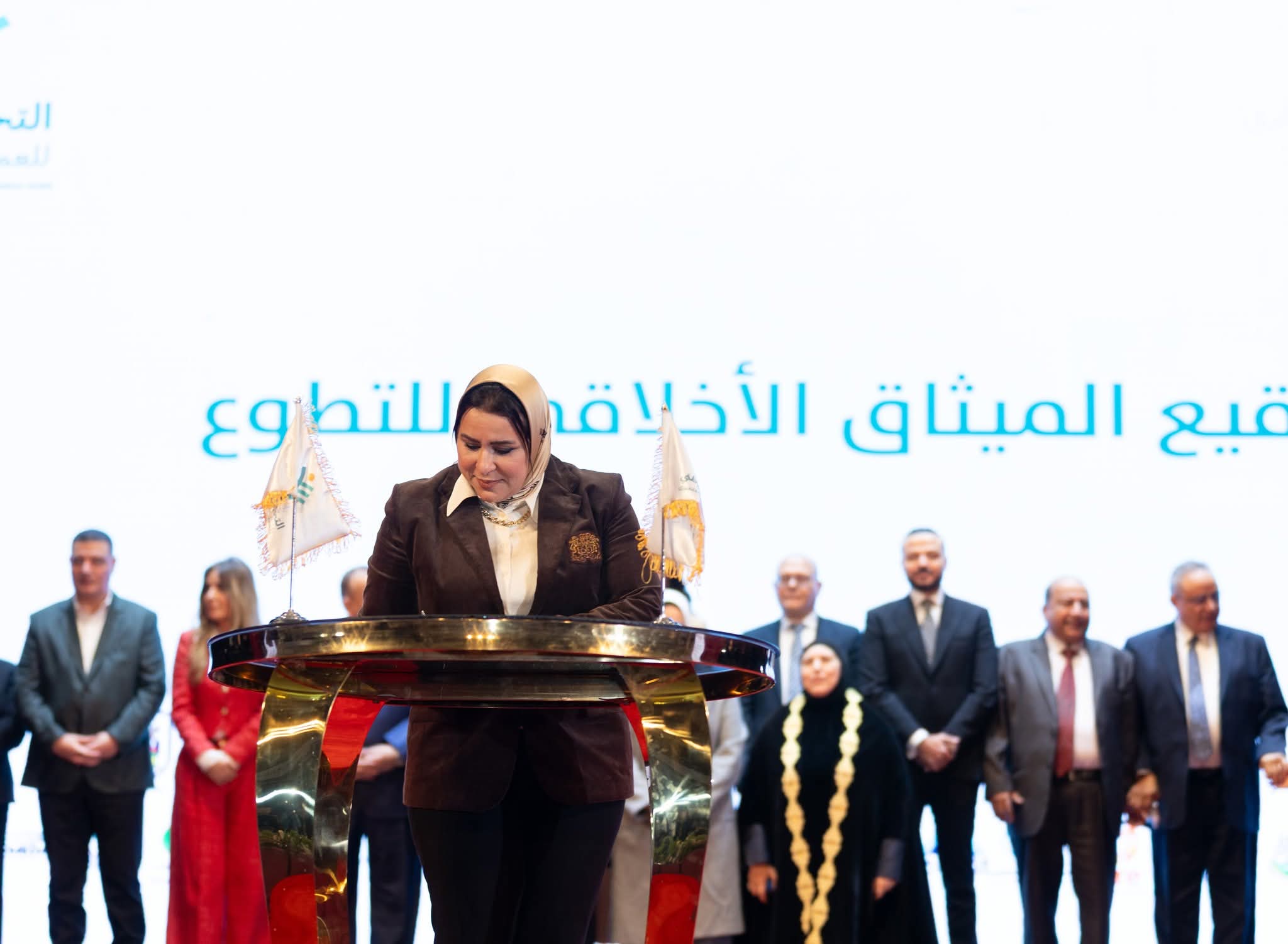 وقامت الدكتورة نيفين الكاتب، رئيس مجلس أمناء المؤسسة وعضو مجلس أمناء التحالف الوطني، بالتوقيع على النسخة الأصلية للميثاق، لتؤكد على التزام المؤسسة بتطبيق أعلى معايير الجودة والشفافية في إدارة ملف المتطوعين، وليعكس إيمانها بأن تنظيم العلاقة بين المتطوع والمؤسسة هو الضمانة الحقيقية لاستدامة العطاء.